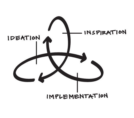 Tim Brown, d’IDEO, minimalise cette pensée schématique et propose… 3 étapes.